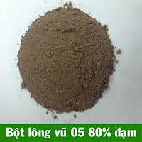 Bột lông vũ: là nguồn protein rất tốt, khi cho gà thịt ăn thức ăn có hỗn hợp bột lông vũ, màu sắc của da sẽ vàng hơn, thịt có vị đậm đà.